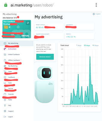 - MY ADVERTISING - itt látod, hogy munkában van-e a robotod, hány százalék hasznot termelt és mennyit.